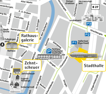 Die Stadthalle verfügt über zwei kostenfreie Parkplätze an der Charlottenstraße (P1) und an der Hirschbergstraße (P2). Ein weiterer Parkplatz befindet sich beim Landratsamt (P3). Als Stadthallenbesucher haben Sie außerdem die Möglichkeit, kostenfrei in der Tiefgarage der Agentur für Arbeit zu parken. Die Zufahrt befindet sich in der Eyachstraße.